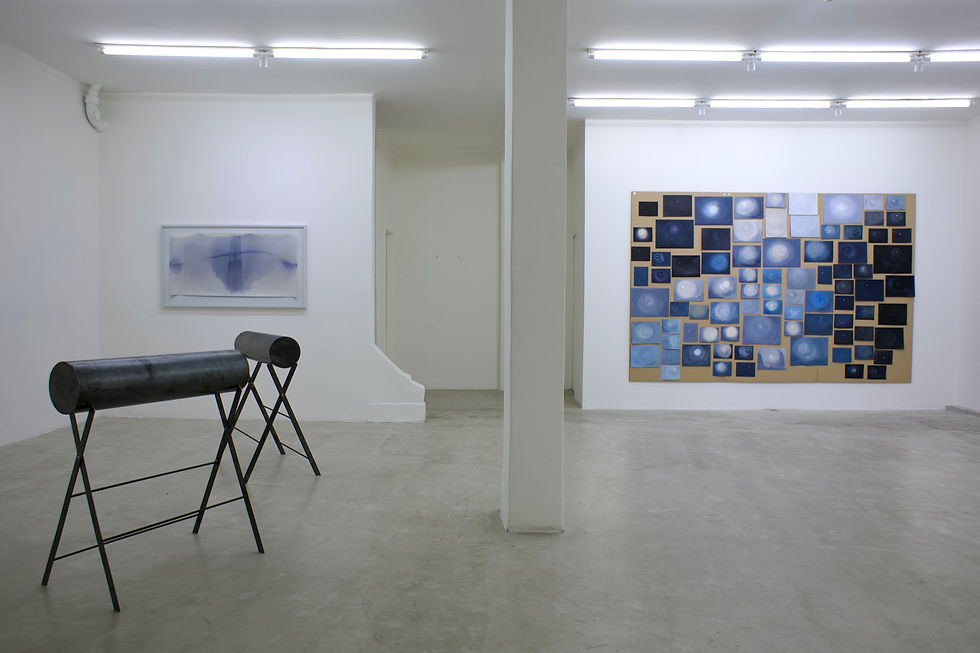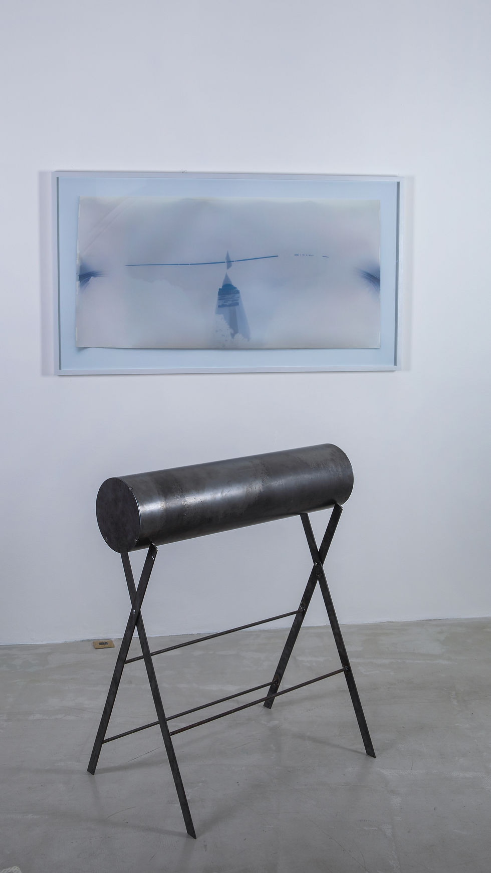 Uno de los intereses infinitos de Erica Bohm es propiciar el diálogo entre la imaginación artística y la disciplina científica. En esta cercanía focaliza en las interrelaciones entre la mirada y la investigación astronómica, en la configuración latente de imágenes de objetos aparentemente lejanos y la pregunta sobre su representación. En el marco de esta exposición, en este sentido, Bohm despliega una exploración sobre la presencia gravitante del sol a través de un conjunto de obras producidas en los últimos diez años. Aquí también insiste en otro problema que la atrae: los modos de interacción de la luz y el tiempo bajo una mirada inter-especista. Una estrella… se focaliza en la observación y captación de la energía emitida por nuestra luminaria regente. Junto a la reunión de objetos y ensayos pictóricos, Bohm se vale del dispositivo fotográfico para especular sobre su injerencia ineludible en nuestra vida. Propone un relato que nos sitúa en pie de igualdad con las diferentes especies que componemos el sistema solar. “Somos polvo de estrellas reflexionando sobre estrellas”, pronunció Carl Sagan, quizás el científico más popular por acercar la investigación astronómica a amplios sectores a través de la televisión. Señaló que los átomos (prácticamente todo lo que existe) alojan partes de estrellas que ya no poseen su antigua presencia en el universo. La mayoría de los elementos que componen el cuerpo humano, y casi todo lo que nos rodea, se ha formado en diversos procesos estelares: el oxígeno que respiramos, minerales esenciales como el magnesio y el potasio, incluso nuestro ADN está compuesto de carbono, hidrógeno, oxígeno, nitrógeno y fósforo. Unos años antes de esta declamación, en 1976 el módulo Viking 1 de la sonda espacial de exploración no tripulada de la NASA llegó a Marte. Algunos de los instrumentos con los que viajó eran dos cámaras vidicon (VIS) que tenían como propósito obtener imágenes del planeta, un espectrómetro de infrarrojos para el mapeado de vapor de agua y radiómetros infrarrojos para el mapeo térmico. Viking 1 alcanzó la órbita marciana en junio de ese año, y unos días después retransmitió las primeras imágenes de este planeta. Por esos meses del mismo año, Erica Bohm abría sus ojos en el planeta tierra y comenzó a mirar nuestros diversos entornos con inquietud. Esta sincronización de acontecimientos habilita al desarrollo de un doble juego de parpadeos (uno robótico y programado; otro humano, curioso y corporizado) que asume un ánima basado en la cercanía que la encarnación humana propicia y, a su vez, en la lejanía de pretensiones objetivas, poderosa y omnipresente que la ciencia alega poseer. Pero Bohm sabe que la mirada es un vector que entabla relaciones y que los viajes son una herramienta de derivas múltiples. Una estrella dentro de una estrella reúne un conjunto de obras pictóricas, video y fotografías que retratan, cada una con sus particularidades, al sol. Así, se disponen en el espacio de la sala buscando dar una semblanza de esa estrella magnética. Dos copias fotográficas de obras estenopeicas alojadas en cilindros de acero que guardan la experiencia de su producción en documenta fifteen (Kassel, Alemania, 2022) ocupan un ángulo del espacio. Estas piezas fueron realizadas a partir de una invitación del colectivo La Intermundial Holobiente conformado por Claudia Fontes, Paula Fleisner y Pablo Ruiz a Bohm para participar de El libro de las diez mil cosas. A partir del diálogo interdisciplinar surgió la propuesta de incluir dos cámaras estenopeicas en el lugar de operación del colectivo en la ciudad alemana. Fantascopio (2022), entonces, se configuró como dispositivo de archivo para observaciones espectrales en dos cámaras estenopeicas que registraron los rastros del sol. Las cámaras se orientaron en diferentes ángulos: una a 40° y la otra a 45°, ubicadas en 51°17'55.6" N; 9°29'35.1" E y 51°17'55.6"N; 9°29'35.2"E, respectivamente. En esta exhibición se exponen Reproducción de Fantascopia #1 y #2, como doble registro de este proceso: por un lado, “originales”; por otro, sus copias únicas. Dentro de los cilindros se encuentran los papeles fotosensibles que alojan el registro del movimiento de la tierra y el sol, y del accionar de agentes como el viento, el clima, los habitantes no humanos y visitantes de documenta fifteen, como también el proceso de reacción a la humedad y al calor en el interior de los barriles metálicos que operaron como cámaras. Estas piezas, ahora, se encuentran resguardadas de la luz y del ojo humano pero expuestas a diversos agentes dentro de los cilindros de acero. A su vez, cada una se completa por una fotografía copia única exhibida a la mirada pública. Por su parte, Cámara oscura (2015-2025) se configuró a raíz de una revelación atenta durante la Residencia de Arte en Antártida, organizado por Andrea Juan desde la Dirección Nacional del Antártico del Ministerio de Relaciones Exteriores de la República Argentina. Allí, trabajando en diversas investigaciones artísticas, Bohm produjo estas piezas como registro espontáneo del accionar de una cámara oscura resultante de un pequeño orificio en la cortina en una habitación en Base Antártica Esperanza. Esa abertura, por el que entraba una mínima cantidad de luz, proyectó la imagen del exterior sobre la pared opuesta: un infinito sol antártico. En un sentido similar, y a su vez, el video First sun (2018-2025) aloja un viaje de pesquisa a otras latitudes y longitudes, como es el archipiélago de Svalbard en el mar Glacial Ártico en Noruega. Allí, en una jornada en un buque de paseo, Bohm buscó capturar mediante la imagen del sol en movimiento el 8 de marzo, primer día de su aparición anual en ese entorno nórdico. La cámara busca retratarlo en un hábitat de montañas y masa acuosa. Por momentos más lejano, por otros más cercano, en parpadeos circular